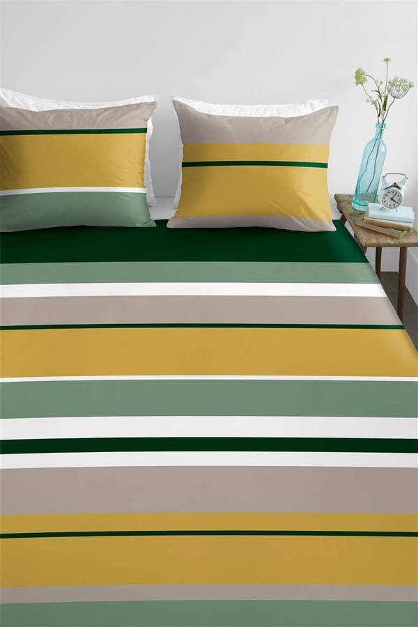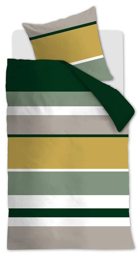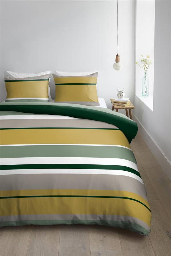 Дизайн постельного белья Andy состоит из полосок разных размеров, которые доступны в зеленом, желтом и белом цветах. Наволочки украшены разными узорами в тех же ярких цветах, что создает современный и игривый эффект. Постельное белье особенно подходит для стильных спален.