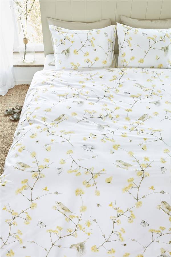 Вы тоже так любите весну? С постельным бельем Chiffchaff от Marjolein Bastin вы принесете ощущение весны в свой дом. На постельном белье изображены поющие пеночки, восседающие на прекрасных желтых цветущих ветках, в окружении жужжащих пчел и порхающих бабочек. Этот принт по всей поверхности придает нежное и романтическое сияние. Узор вдохновлен атмосферными и деревенскими рисунками Marjolein Bastin.