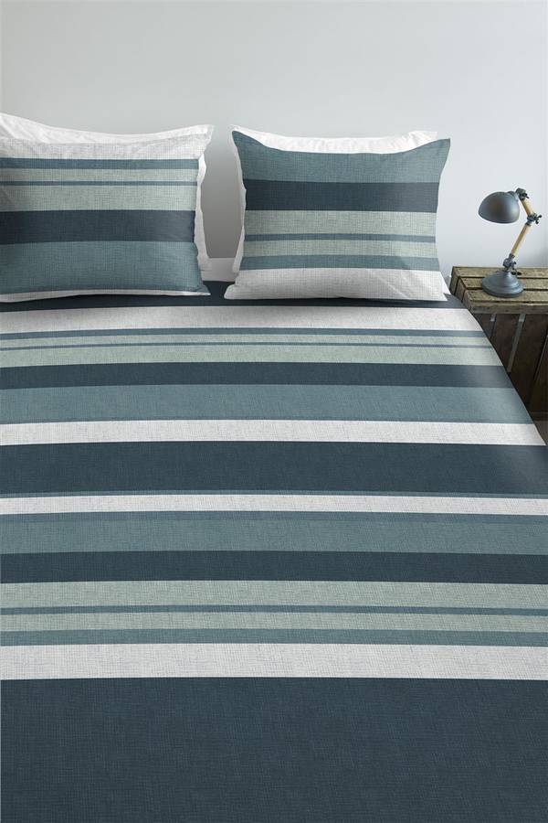 Пододеяльник Dani от Ambiante отличается простым и вневременным дизайном с горизонтальными полосками. Чехол украшен узкими и широкими полосками свежих оттенков синего. Принт имеет грубую фактуру. Наволочки имеют разный дизайн в тех же ярких цветах, что придает покрывалу игривый вид.