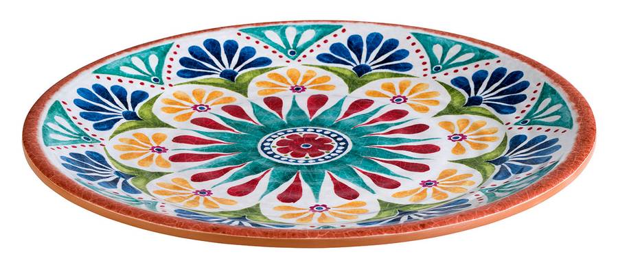 Вид этой средиземноморской меламиновой тарелки сразу же настроит вас на тапас-вечеринку. Благодаря испанскому шарму и продуманным деталям вы привезете с собой кусочек Испании.