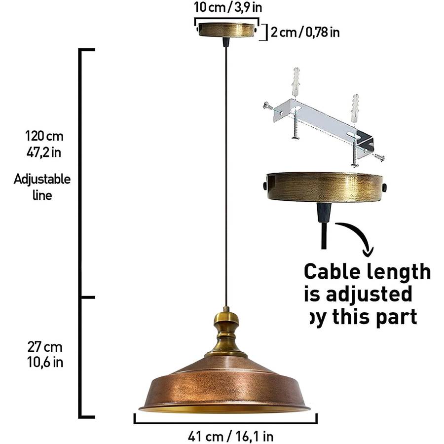 ТЕХНИЧЕСКАЯ ИНФОРМАЦИЯ И ВЫСОКОКАЧЕСТВЕННЫЕ МАТЕРИАЛЫ: Деревянный подвесной светильник изготовлен из металла (размер: как на рисунке), цоколь: E27. Можно использовать светодиодные, галогенные и обычные лампочки мощностью до 60 Вт. Лампочка в комплект не входит. Напряжение: 120-240 В. Можно использовать с диммером. РАЗМЕРЫ И РЕГУЛИРУЕМАЯ ВЫСОТА: высота 28 см, диаметр 41 см. Диаметр круглого потолочного крепления - 10 см. В комплект входит прочный регулируемый по длине кабель длиной 120 см. Длину кабеля можно регулировать в соответствии с вашими предпочтениями и дизайном, и можно подвешивать выше или ниже по желанию.