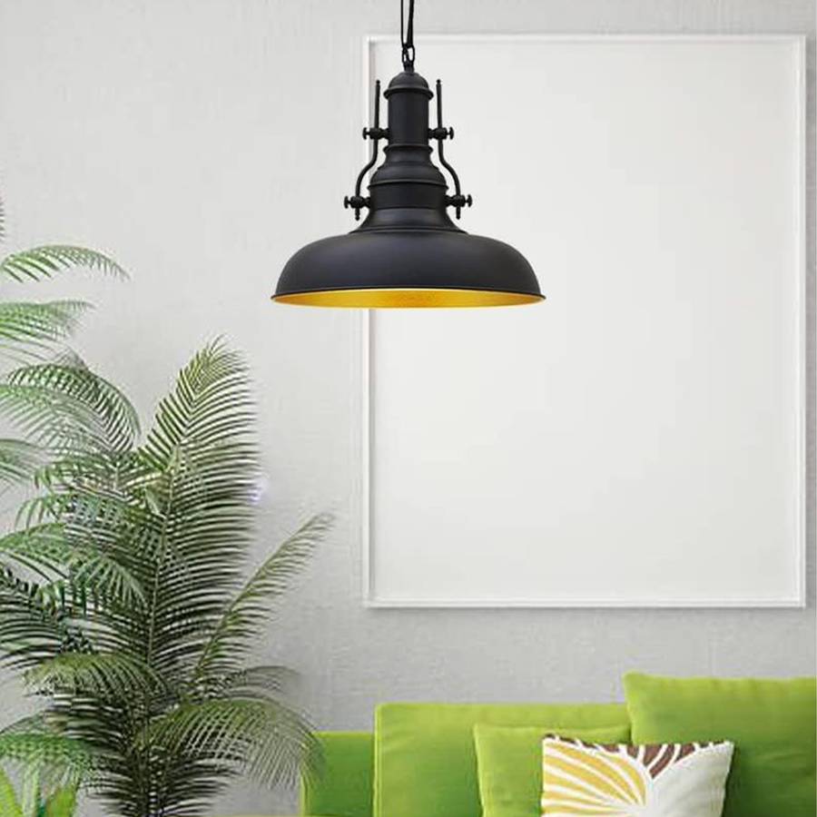МАТЕРИАЛ И ЦВЕТ: Подвесной светильник черного цвета изготовлен из металла. Диаметр - 31 см, высота - 35 см. ТЕХНИЧЕСКИЕ ХАРАКТЕРИСТИКИ: Цоколь светильника для гостиной - E27, максимальная мощность 60 Вт, включая лампочки: нет. В этом кухонном светильнике используются светодиодные, галогенные и деревенские лампочки. Длина кабеля светильника для гостиной в индустриальном стиле - 120 см, его можно укоротить по желанию. Напряжение: 120-240 В. Этот подвесной светильник можно использовать с диммером.