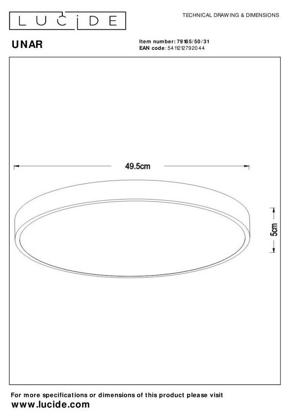 Великолепный, элегантный, простой и неподвластный времени. Потолочный светильник Unar гармонично сочетает в себе все эти качества. Благодаря круглому металлическому каркасу и матовому рассеивателю для встроенной светодиодной лампы этот светильник впишется практически в любой интерьер. Диаметр светильника Unar составляет 50 см, а высота - 5 см. Идеальный потолочный светильник для гостиной или столовой, кухни или офиса. Отрегулируйте интенсивность света по своему вкусу с помощью встроенного диммера и получите правильное освещение для любого времени суток.