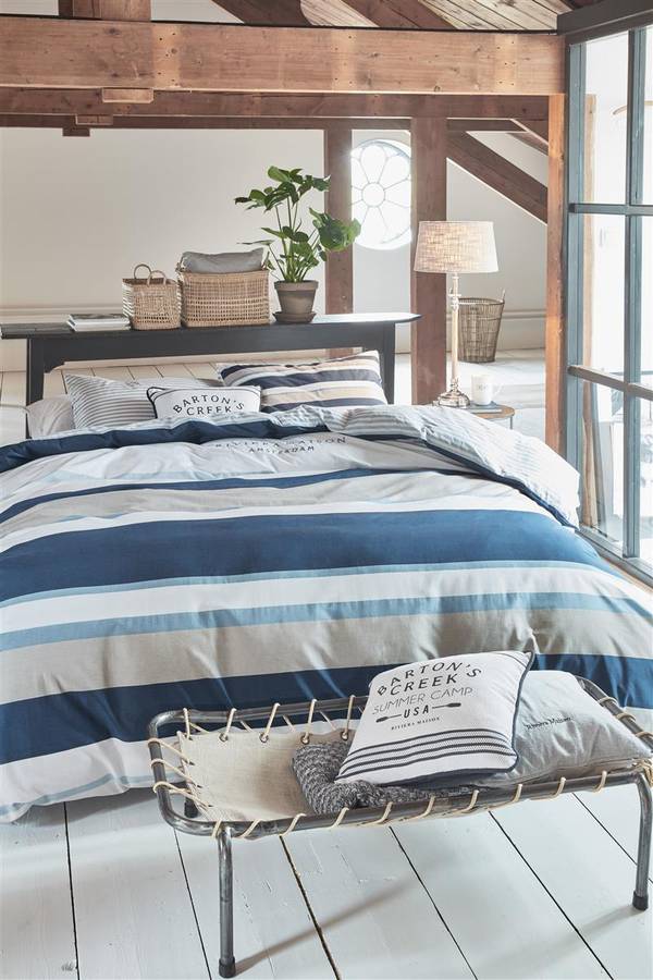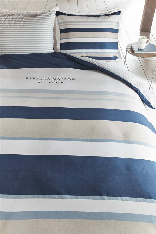 Постельное белье Mason Ridge с набивным рисунком, состоящим из панелей разной ширины и цвета, наполнено легкой льняной тканью, что придает покрывалу свежий спортивный вид. На изголовье вышита надпись Riviera Maison Amsterdam. На обратной стороне покрывала - полосатый рисунок. Следуя трендам в области путешествий и спорта, постельное белье идеально подойдет для спальни в деревенском или классическом стиле. Постельное белье изготовлено из высококачественного чистого хлопка. Пододеяльник оснащен практичной застежкой-молнией.