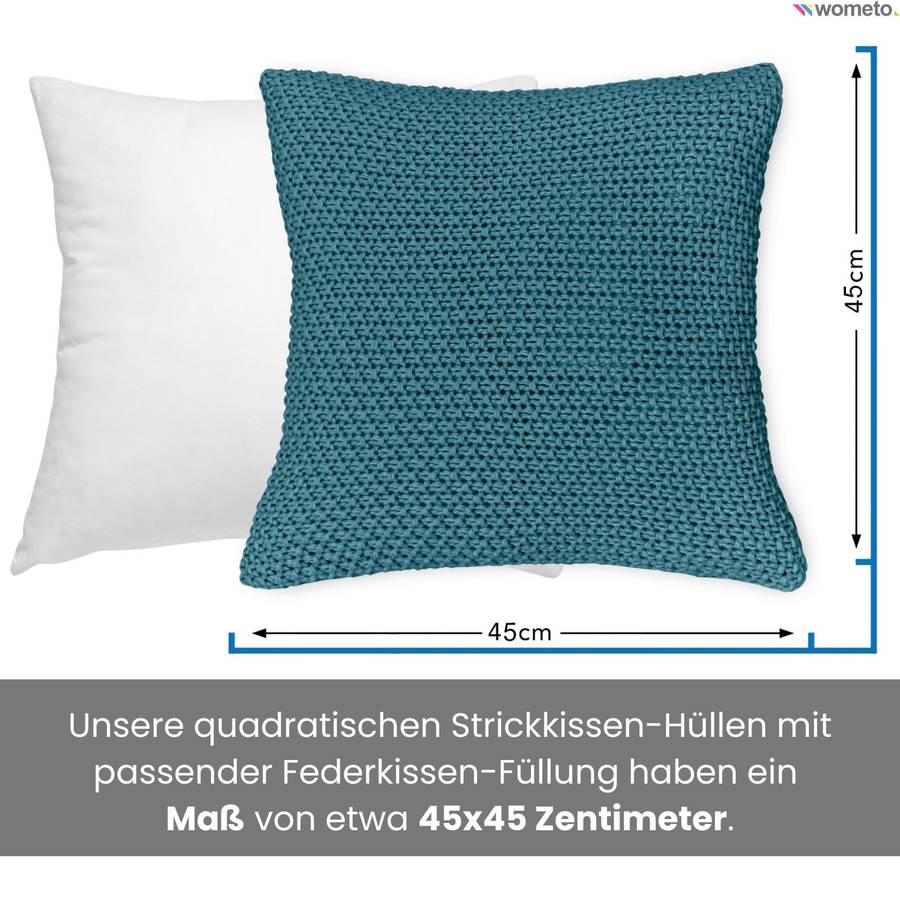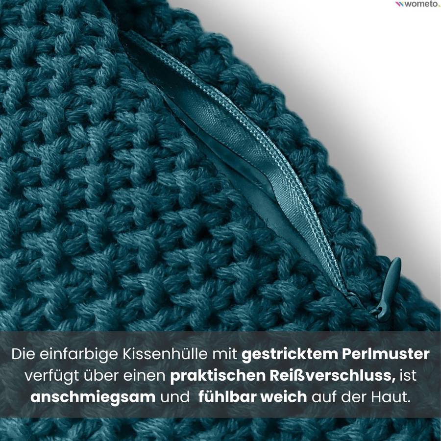 Красивая и абсолютно современная наволочка с вязаным узором из бисера, размером примерно 45x45 см, с практичной застежкой-молнией. Наволочка имеет вязаный размер (производственный размер) примерно 40x40 см. Однако полезный размер составляет 45x45 см. Эта модная наволочка представляет собой только вязаный чехол (без подкладки). Мы рекомендуем использовать внутренний чехол в соответствующем цвете или подходящую внутреннюю подушку.