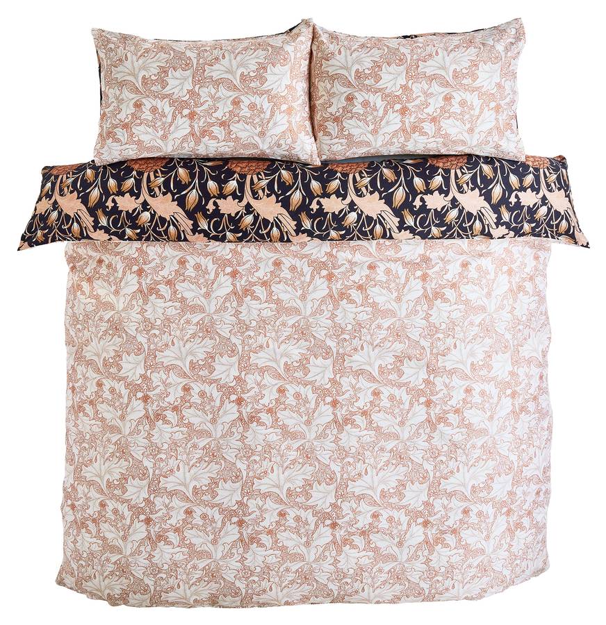 Добавьте тепла, индивидуальности и прикосновения традиций в свою спальню с пододеяльником Wild Tulip Copper от William Morris at Home. Этот богатый узор вдохновлен реалистичными цветочными мотивами из архива William Morris, гармонично сочетая в себе формы тюльпанов и изящную текстуру листьев. Глубокие медные оттенки создают теплый, успокаивающий вид и мгновенно добавляют стильный штрих в вашу спальню.