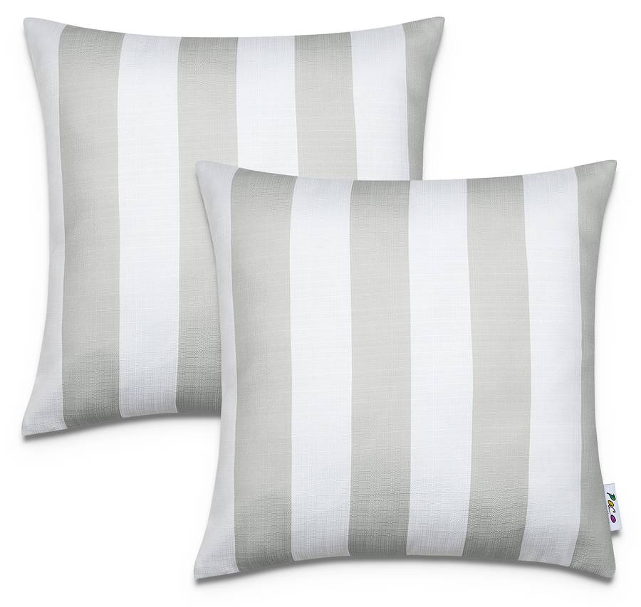 ВНЕШНИЙ ВИД - Эти модные наволочки выполнены в классическом полосатом узоре и впечатляют современными бежевым, синим и зелеными цветами.