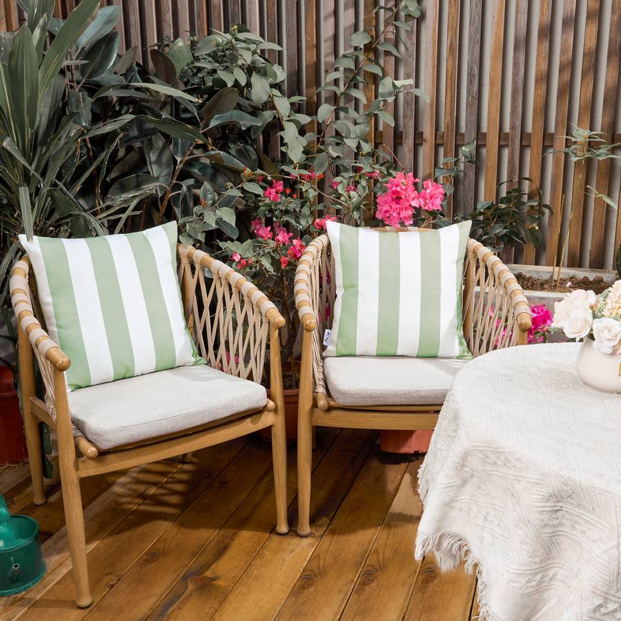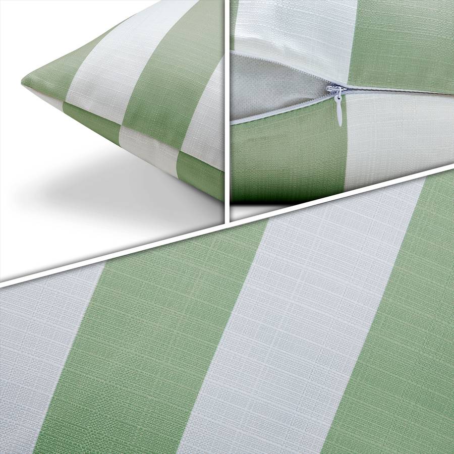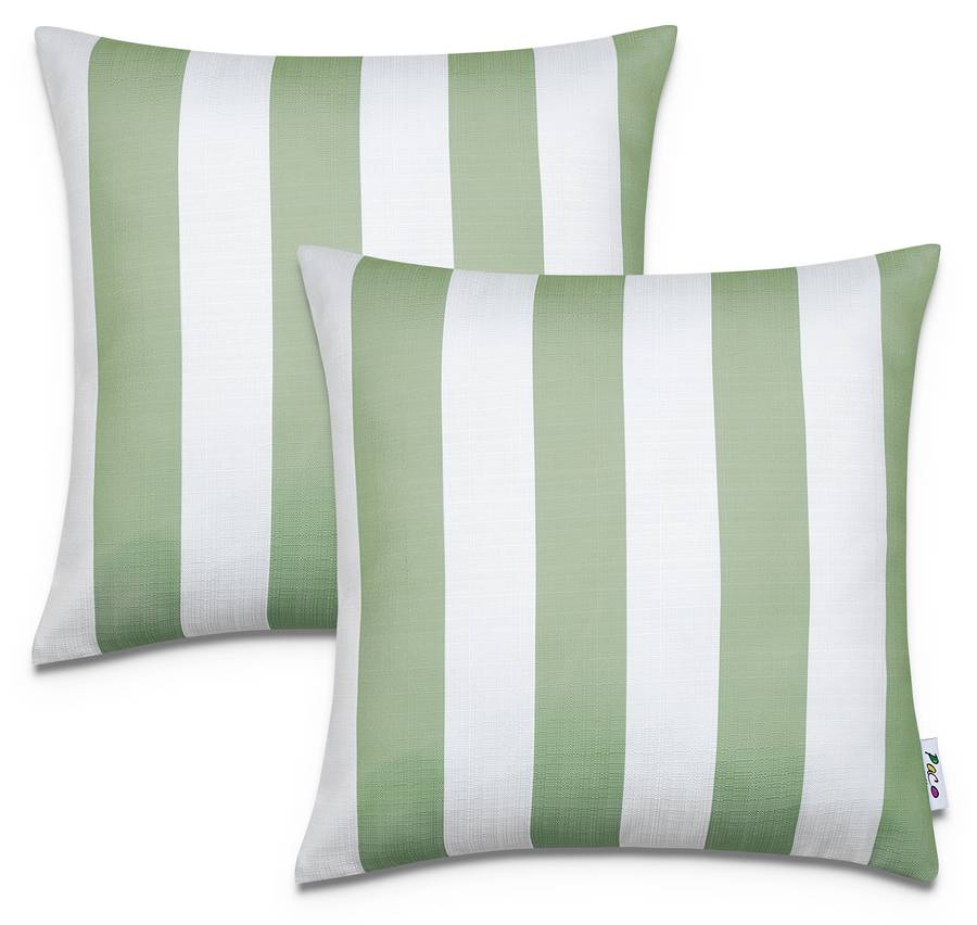 ВНЕШНИЙ ВИД - Эти модные наволочки выполнены в классическом полосатом узоре и впечатляют современными бежевым, синим и зелеными цветами.