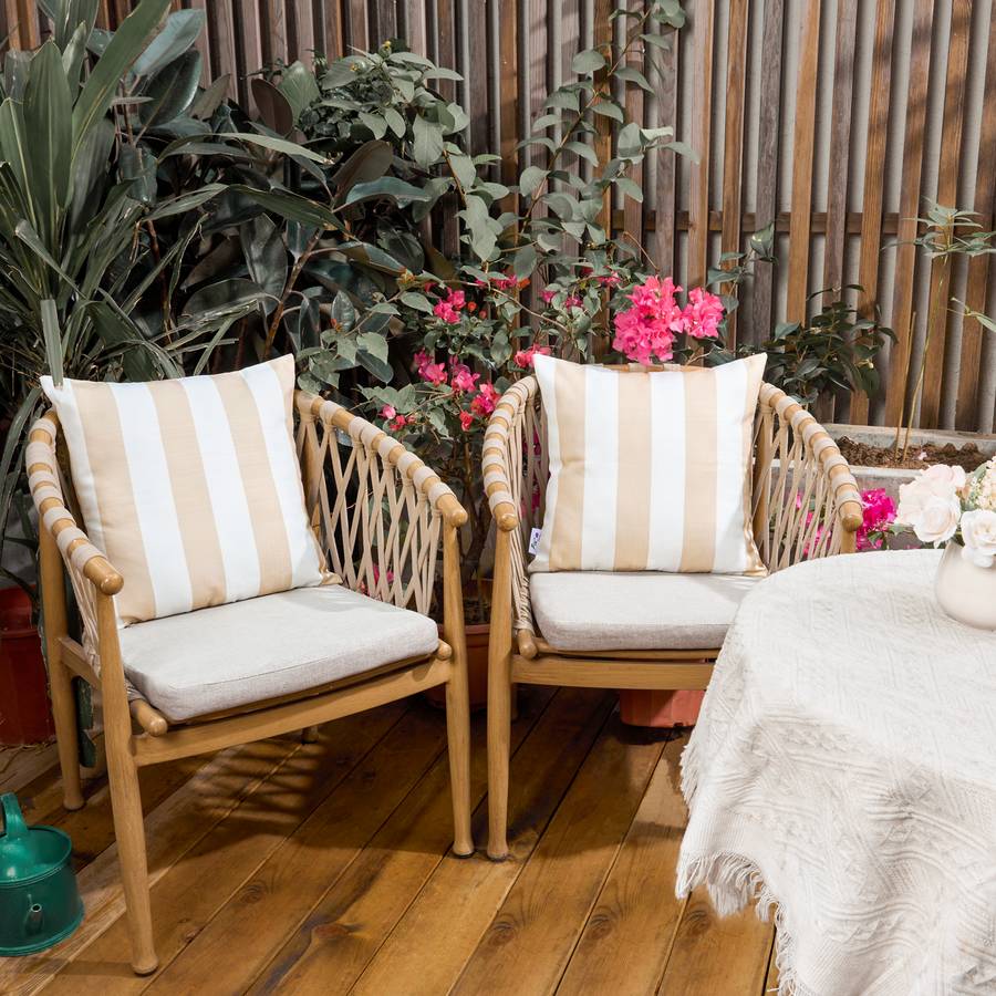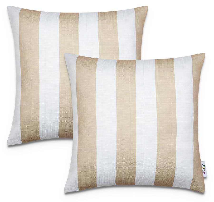 ВНЕШНИЙ ВИД - Эти модные наволочки выполнены в классическом полосатом узоре и впечатляют современными бежевым, синим и зелеными цветами.