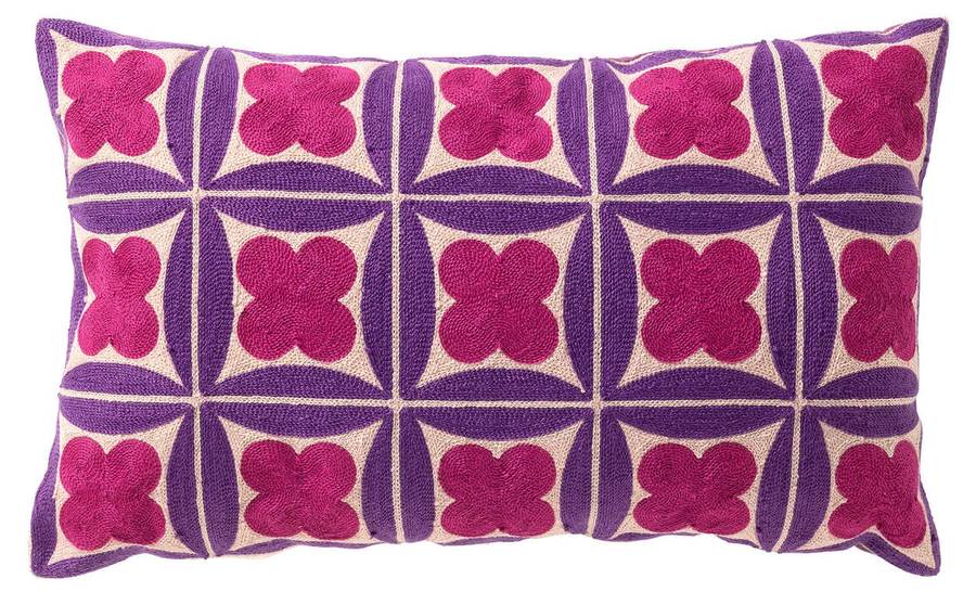 Чехол для подушки Clover размером 30x50 см в цвете Deep Lavender добавит игривый акцент в ваш дом. Лицевая сторона украшена геометрическим узором с розово-фиолетовой вышивкой. Изнаночная сторона выполнена из плотного фиолетового бархата. Поставляется без наполнителя, идеально подходит с уже имеющейся обивкой.