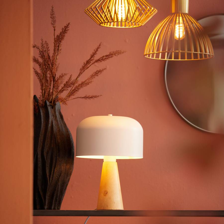 Эта настольная лампа с белым полукруглым абажуром возрождает ретро-стиль! Настольная лампа Aimo имеет круглую форму и легко впишется в любой интерьер. Благодаря круглому металлическому абажуру, она создает направленное освещение. Она практична в качестве ночника или станет отличным освещением для прикроватного столика или комода. Верхняя часть лампы изготовлена из металла, а основание - из резины. Размер этого продукта составляет 25 х 35,5 см.