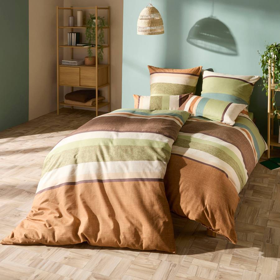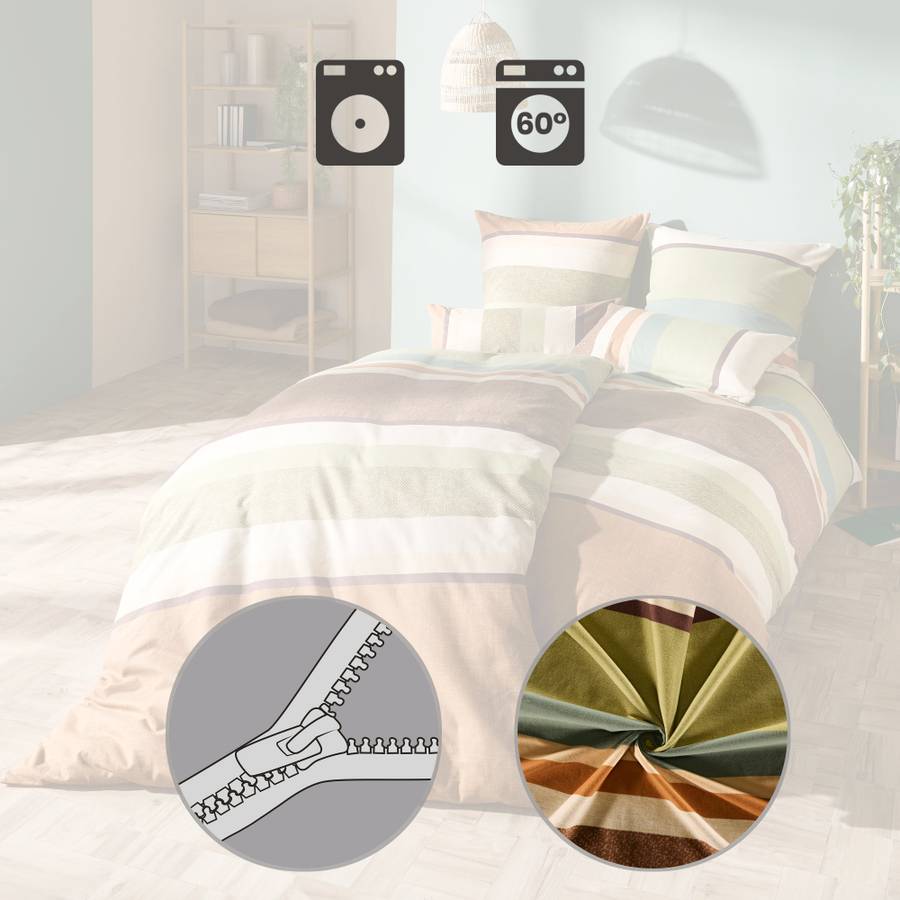 Постельное белье из фланели Erwin Müller. Изящный рисунок в горизонтальную полоску и гармоничные цвета создадут изысканную атмосферу в вашей спальне. В комплект входит двусторонняя наволочка. Плотная ткань с бережным начесом и мягким ворсом обеспечивает высокий уровень комфорта. Как только вы ляжете в постель, вы ощутите приятное тепло и чувство защищенности. Это белье не только дышащее и терморегулирующее, но и приятное для кожи и простое в уходе. Быстро и легко надевается благодаря практичной молнии.