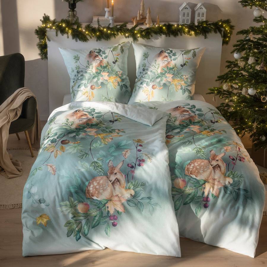 Уютное фланелевое постельное белье Estella Фердинанд. Лиса и олень, окруженные листвой, наполнят ваш дом природными мотивами. Высококачественная цифровая печать гарантирует, что цвета сохранят свою яркость и выразительность надолго. Побалуйте себя уютом и мягкостью этого постельного белья холодными зимними вечерами. Этот материал с начесом с одной стороны и специальной флисовой поверхностью приятен на ощупь, согревает, дышит и регулирует температуру. Легко закрывается благодаря практичной молнии.