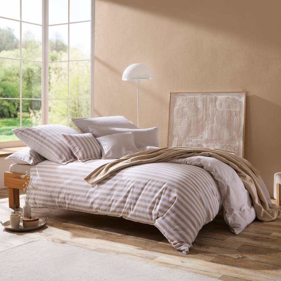 Двустороннее постельное белье Erwin Müller из тонкой фланели. Сочетание двух полосок создает разнообразие и яркие контрасты. Трехсторонняя окантовка на наволочке добавляет элегантные акценты. Мягкая, пушистая, гладкая ткань из тонкой гребеной пряжи - настоящее удовольствие. Она особенно комфортна и окутывает теплом и уютом в холодные зимние месяцы. Этот материал не только дышащий и приятный для кожи, но и терморегулирующий, и за ним легко ухаживать. Легко надевать благодаря практичной молнии.