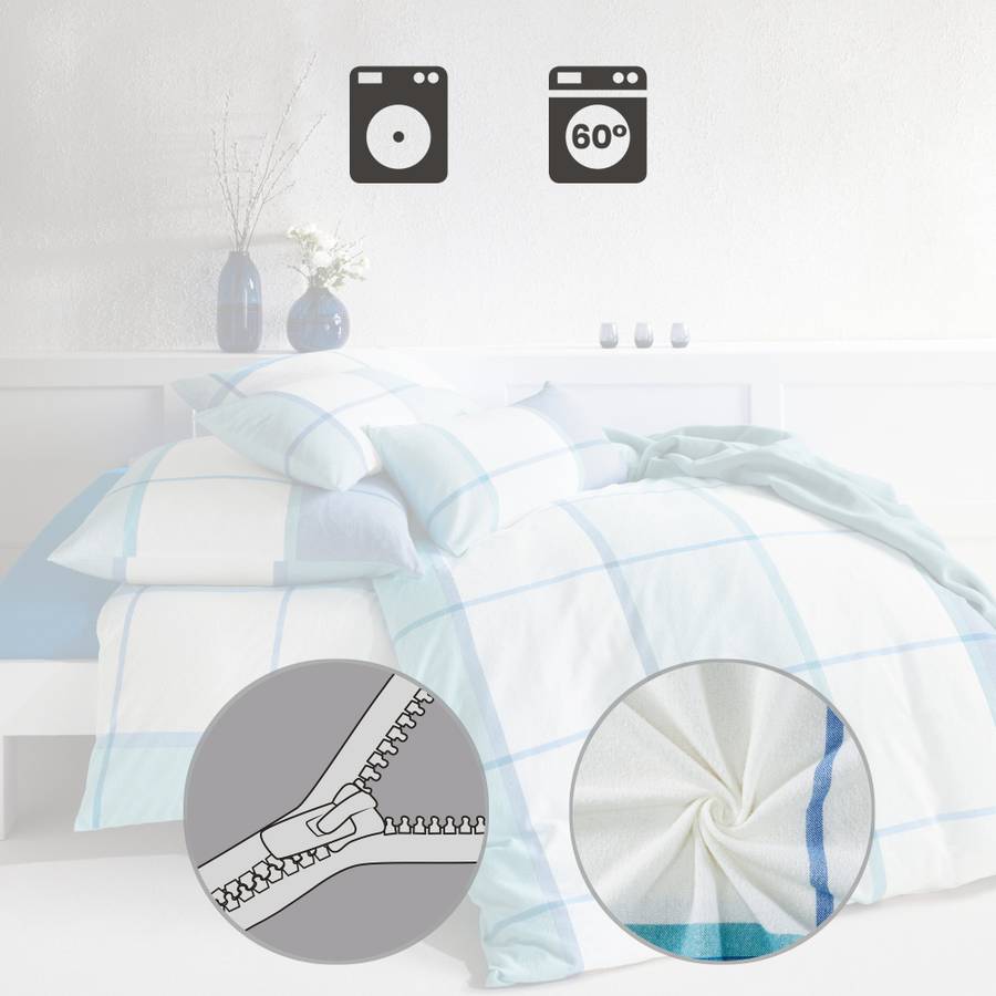 Мягкое махровое постельное белье Erwin Müller. Неизменный клетчатый узор придает этому белью особое очарование. Оно создает приятную атмосферу в вашей спальне. Наслаждайтесь уютным сном круглый год! Побалуйте себя мягкостью и комфортом. Слегка отшлифованные петельки из чистого хлопка создают небольшие воздушные карманы. Именно это создает в махровом полотне прекрасный микроклимат для сна. Кроме того, оно не только чрезвычайно приятно для кожи, дышащее и терморегулирующее, но и легкое в уходе, сохраняет форму и не требует глажки. Легко надевать чехол благодаря практичной молнии.