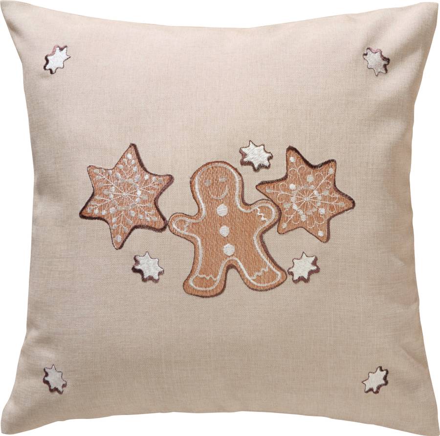 Наволочка REDBEST Имбирный пряник. Идеально подходит для Адвента и Рождества, поскольку вышитые пряничные человечки и звезды мгновенно создают теплую, уютную атмосферу. Гладкая изнаночная сторона. Изготовлен из простого в уходе материала с прочным льняным внешним видом, что делает его долговечным, износостойким и подходящим для повседневного использования.