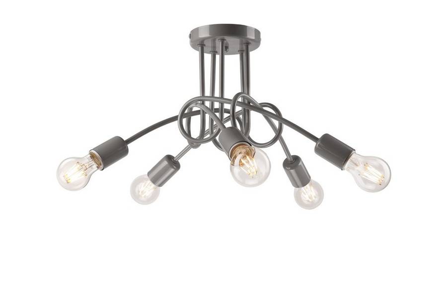 Lamkur Camilla Flexi Camilla Multi Arm Semi Flush Ceiling Light Grey, 5x E27