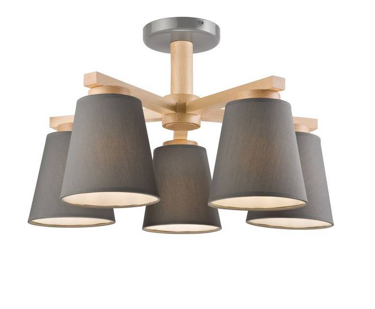 Lamkur Ellie полувстраиваемый потолочный светильник с несколькими рожками, серые тканевые абажуры, 5 лампочек E27
