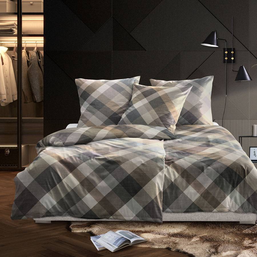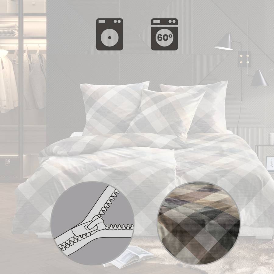 Постельное белье из премиальной фланели Irisette. Современный графический рисунок состоит из диагональных полосок, подобранных по цвету. Пусть мягкий бархатный ворс перенесет вас в страну снов. Холодными зимними вечерами этот пушистый, мягкий и сказочно легкий материал премиум-класса очаровывает своей невероятной мягкостью. Он сочетает в себе исключительную мягкость и тончайшую хлопковую пряжу. Этот эксклюзивный, высококачественный продукт не только регулирует температуру, регулирует влажность и приятен для кожи, но также прост в уходе и покрывается благодаря практичной молнии.