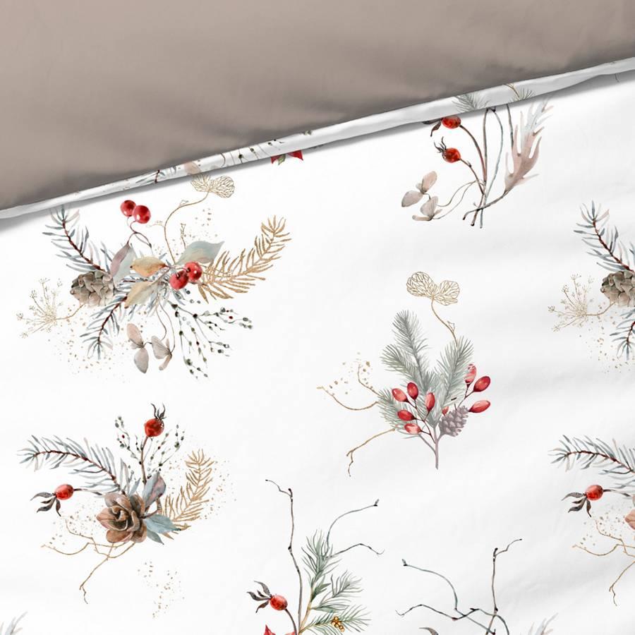 Двустороннее постельное белье Fleuresse Velvet Flannel. Зимние композиции из красных плодов шиповника и зеленых еловых веток создадут в вашей спальне волшебную атмосферу. Они сияют стойкими красками, что гарантирует высококачественная цифровая печать. Если вам покажется слишком ярким, создайте спокойные контрасты с однотонной изнанкой. Подарите себе особенный сон. Эта бархатистая фланель сочетает в себе приятную мягкость бархата и уютное тепло фланели. Этот эффект достигается за счет легкой шероховатости ткани - гарантия уютных ночей в роскошном комфорте. В холодные ночи дышащая, приятная для кожи ткань обеспечит комфортные условия для сна благодаря своим терморегулирующим свойствам. Легко надевать благодаря практичной молнии.