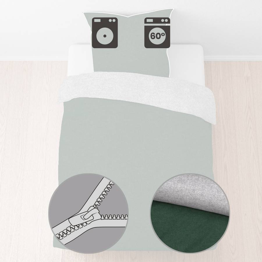 Двустороннее постельное белье Biberna Melange Flannel. Это нежное постельное белье в двух гармоничных цветах создает ощущение уюта и спокойствия. Его можно переворачивать по настроению. Кант на наволочке добавляет красивый акцент. Высококачественная меланжевая пряжа, созданная из особой смеси окрашенных волокон, придает этой пушистой ткани характерный однотонный вид. Бархатистая, мягкая, ворсистая поверхность балует вашу кожу и окутывает уютным теплом. Уютное подарко в холодное время года. Дышащий и терморегулирующий. Быстро закрывается благодаря практичной молнии.