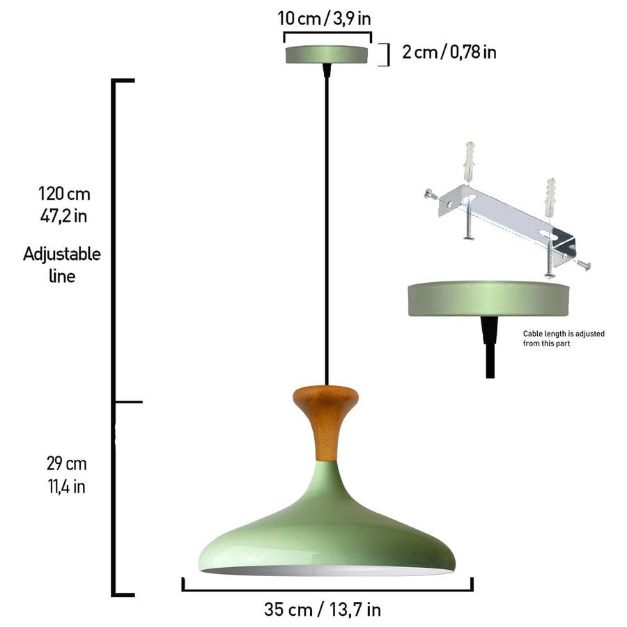 МАТЕРИАЛ: Подвесной светильник для кухни изготовлен из металла. Диаметр - 35 см, высота - 30 см. ТЕХНИЧЕСКАЯ ИНФОРМАЦИЯ: Цоколь для детской комнаты - E27, максимальная мощность 60 Вт, включая лампочки: нет. В этом подвесном светильнике используются светодиодные, галогенные и светильники в деревенском стиле. Длина кабеля - 120 см, его можно укоротить по мере необходимости. Напряжение: 120-240 В. Этот светильник для гостиной можно использовать с диммером.