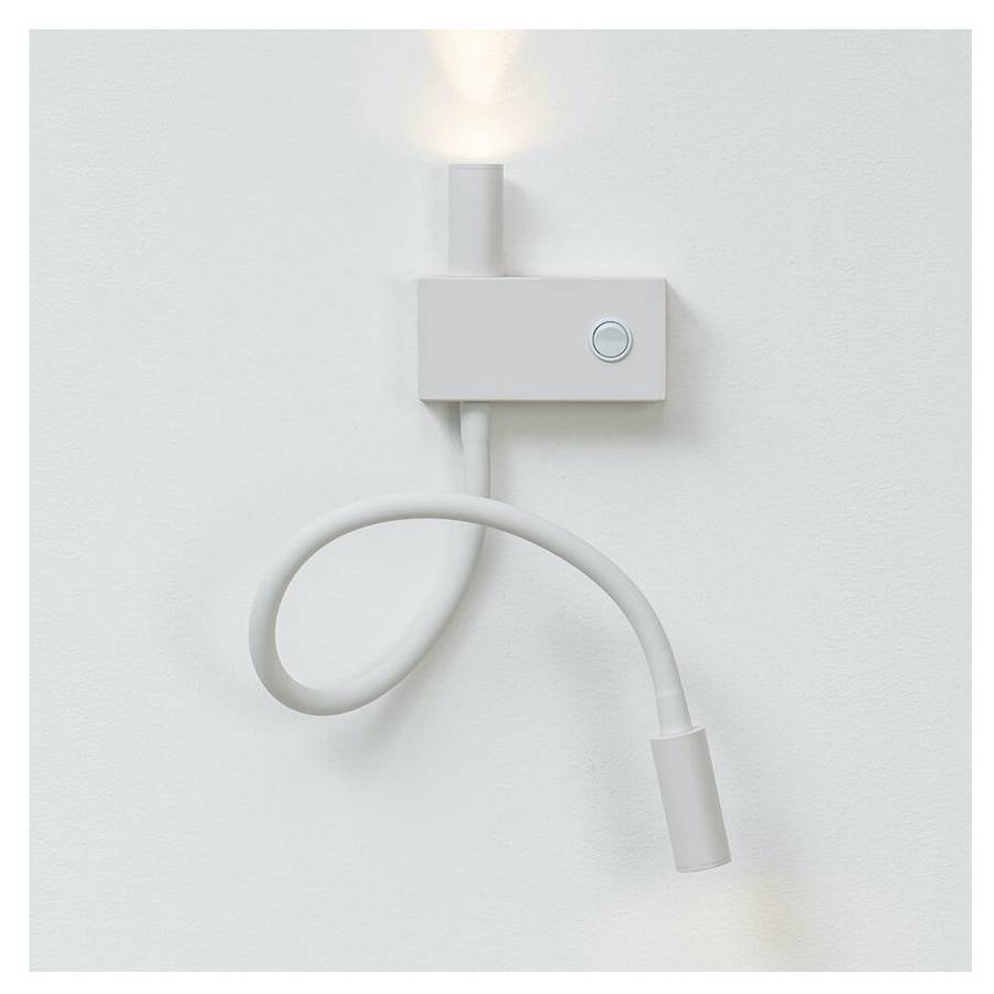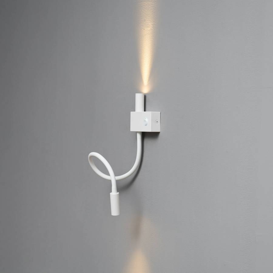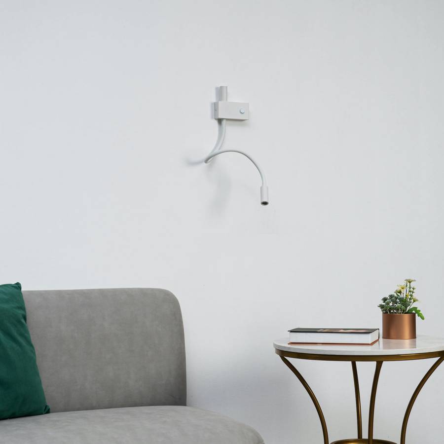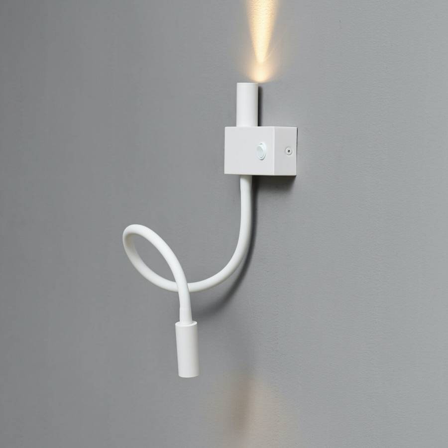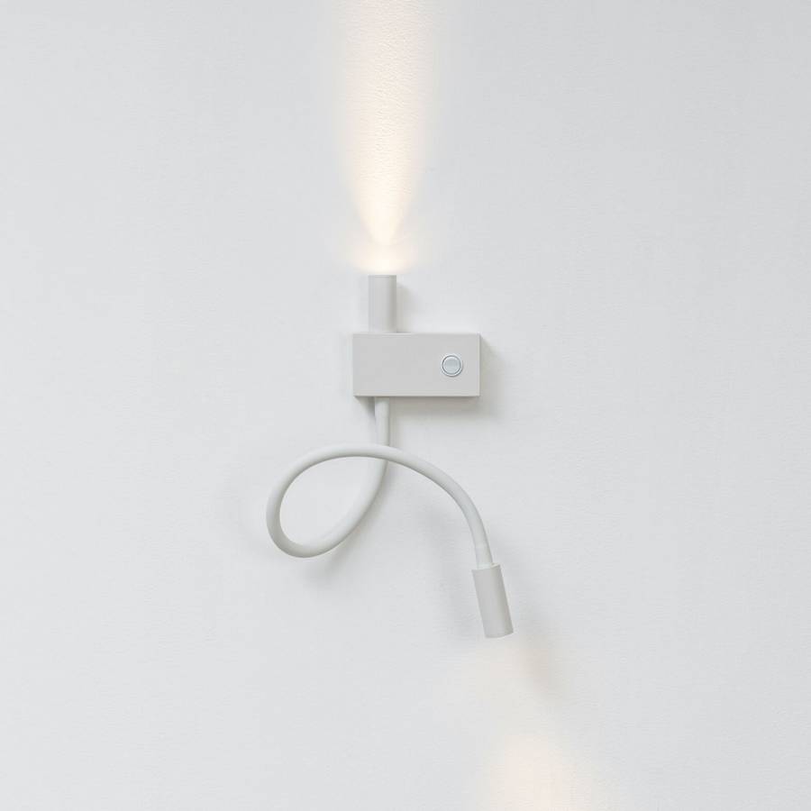 Небольшой белый настенный светильник Nanda с функцией чтения идеально подходит для освещения возле кровати или стола. Один источник света используется для освещения комнаты. Второй регулируется и позволяет направлять свет в определенную точку. Nanda - это встроенный светодиодный настенный светильник, который также доступен в черном цвете.