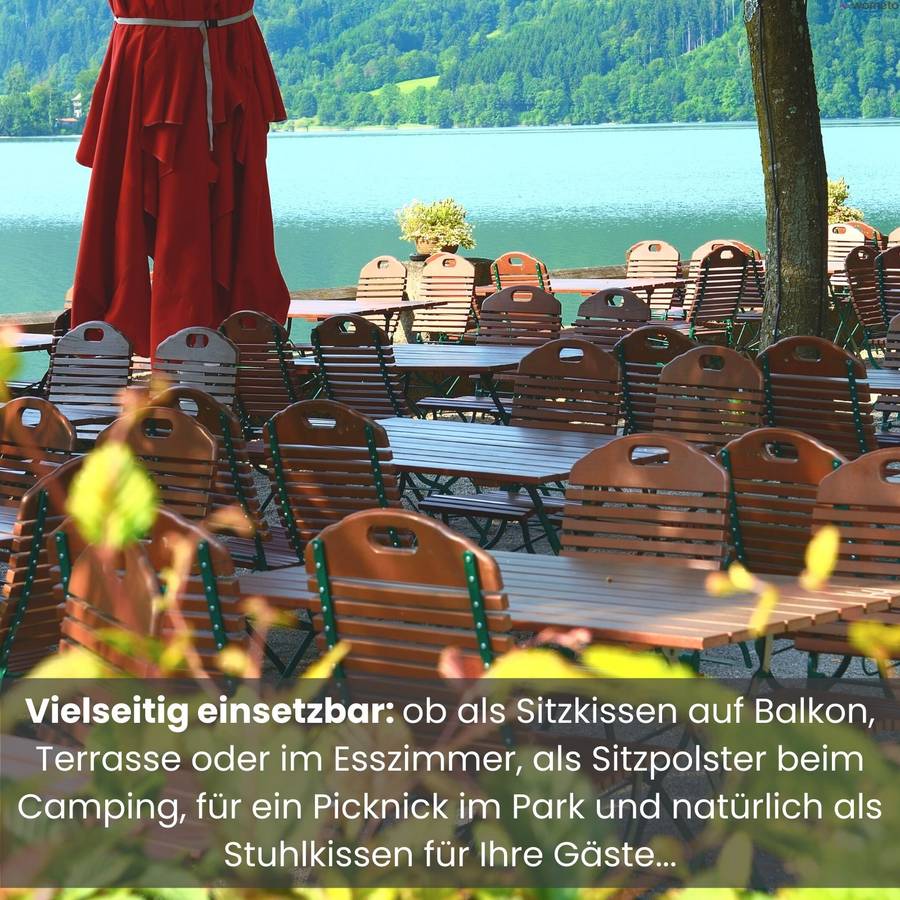 Подушка для стула / подушка для сиденья стульев: Мягкая, модная подушка для стула 40x40 с 16-кратной стежкой, размером примерно 40x40 см и высотой около 4 см. Будь то ваша новая садовая мебель на террасе, ваша деревянная скамейка перед входной дверью или ваш комплект сидений для столовой, эта подушка для стула 40x40 не только повысит ваш комфорт, но и визуально преобразит вашу мебель. Квадратная подушка для стула 40x40 с ремнями может быть прикреплена к спинке; петля предотвращает скольжение подушки. Независимо от того, оформляете ли вы интерьер в стиле загородного дома или в современном стиле, эти подушки для скамей сделают любую столовую или террасу более живой и уютной, для прекрасных летних вечеров или уюта в отапливаемом помещении зимой. Прочная подушка сиденья идеально подходит для использования в помещении и на улице (под чехлом), а также имеет 16-точечную простегку.