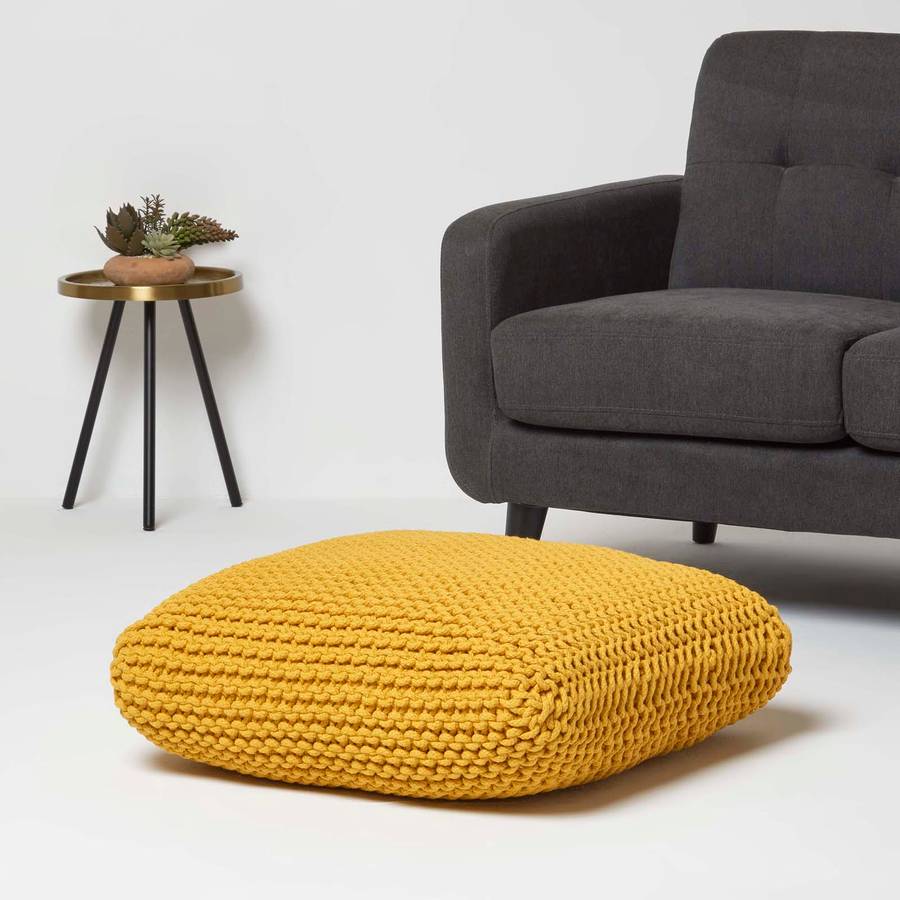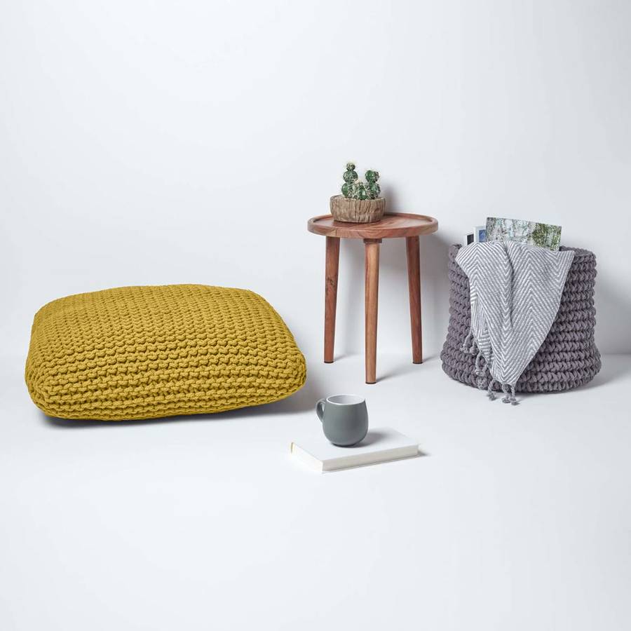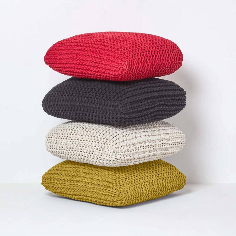 Декоративные подушки для сидений и вязаные пуфы от Homescapes