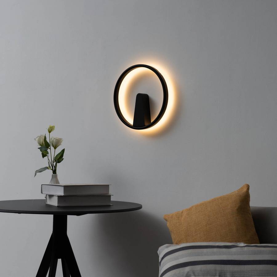 Scott - небольшой круглый настенный светильник с простым и лаконичным дизайном. Он очень сдержанный и отлично подходит для спальни или прихожей. Он оснащен встроенной светодиодной подсветкой. Диаметр светильника - 30 см. Это светильник с чистой матово-черной поверхностью, обеспечивающий высококачественное непрямое освещение.