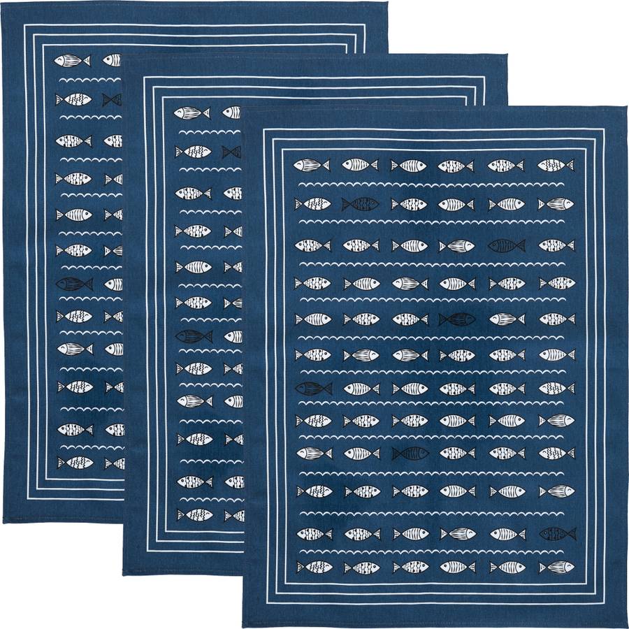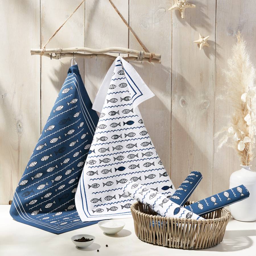 Кухонные полотенца Erwin Müller в упаковке по 3 шт. Маленькие рыбки резвятся на этих практичных полотенцах, создавая морской образ. Прочные, хорошо впитывающие материалы. Печать спереди.