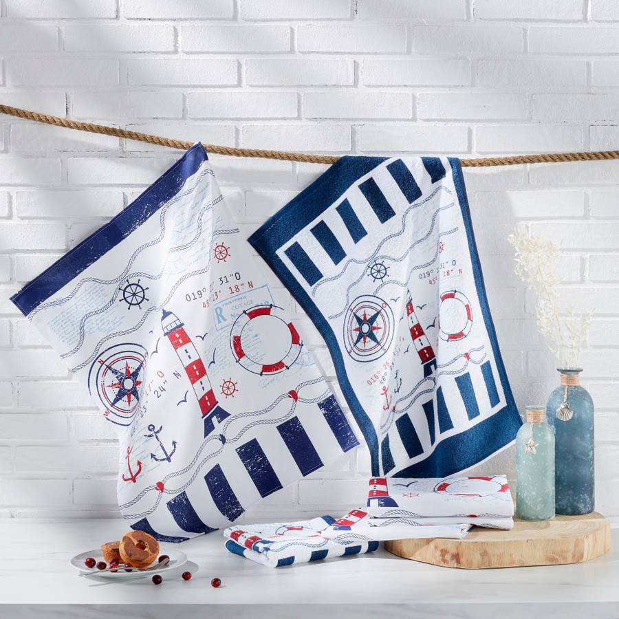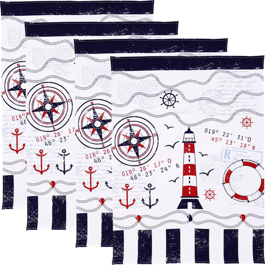 Хлопковые кухонные полотенца Erwin Müller в упаковке по 4 шт. Морской принт создает ощущение прибрежной жизни. Эти практичные полотенца - незаменимый атрибут вашей кухни. Они впечатляют своей исключительной прочностью и впитывающей способностью. Напечатаны спереди.