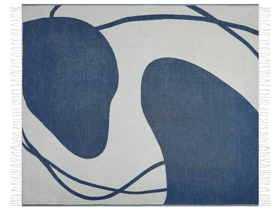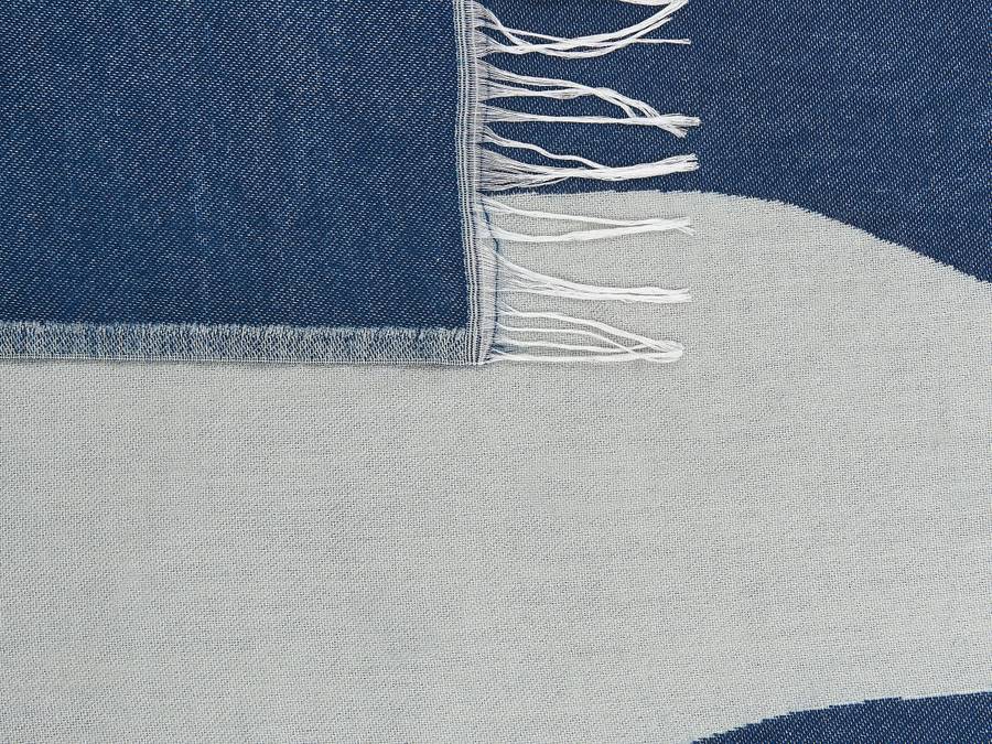 Современное покрывало в сине-белой гамме с бахромой. Насладитесь мягкой текстурой этого стильного пледа и добавьте декоративный акцент в свою гостиную или спальню. Абстрактный синий узор и кремово-белые кисточки придадут любому помещению современный вид. Одеяло изготовлено из акрила и полиэстера и гарантирует многолетнее качество.