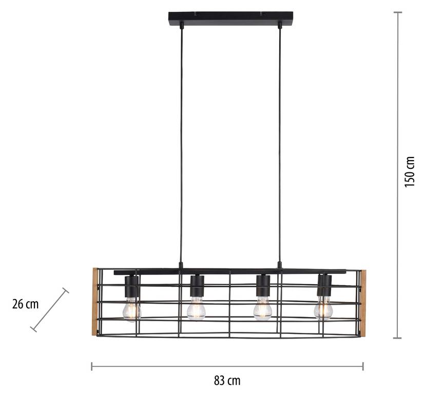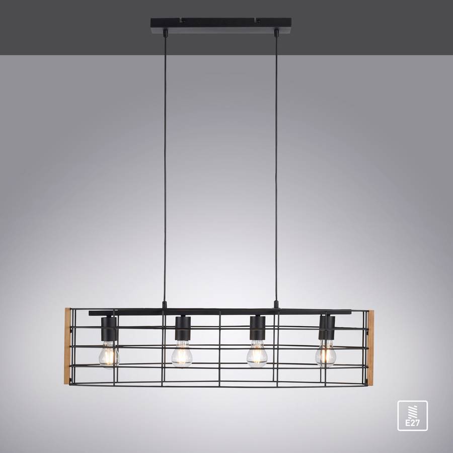 Подвесной светильник DRAIN с одной лампой овальной формы впечатляет своим уникальным дизайном, который особенно подходит для обеденной зоны. Квадратный плафон и провода черного цвета. Металлический абажур в форме клетки дополнен деревянными боковинами. Это привнесет уют в ваши комнаты. Открытый абажур обеспечивает хороший обзор источника света, поэтому следует выбрать подходящий источник света, чтобы завершить общий вид подвесного светильника.