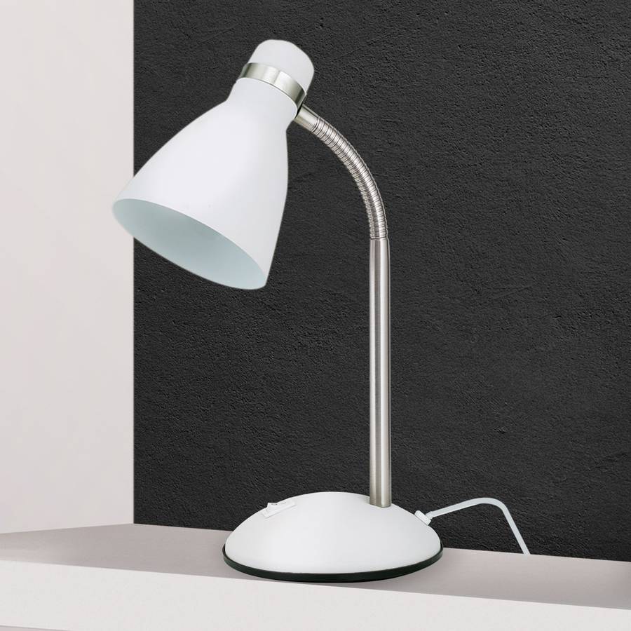 Настольная лампа SCHOOL гармонично вписывается в общий дизайн и станет идеальным дополнением для рабочего места людей всех возрастов. Основание и абажур выполнены в одном цвете, выделяется только серебристый держатель, обрамляющий верхнюю часть абажура. Держатель также можно отрегулировать, чтобы направить световой поток в нужную сторону. Встроенный выключатель в основании лампы обеспечивает легкое включение и выключение. Лампа оснащена цоколем E27 и рассчитана на мощность до 40 Вт. Мы рекомендуем использовать энергосберегающие светодиоды, так как они характеризуются крайне низким энергопотреблением.