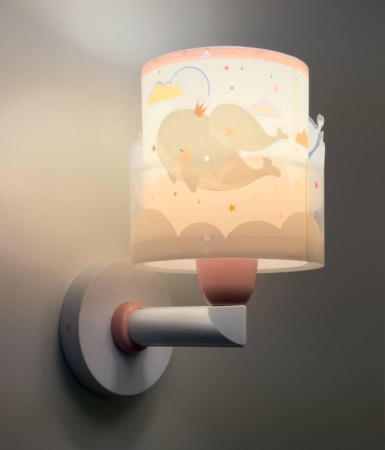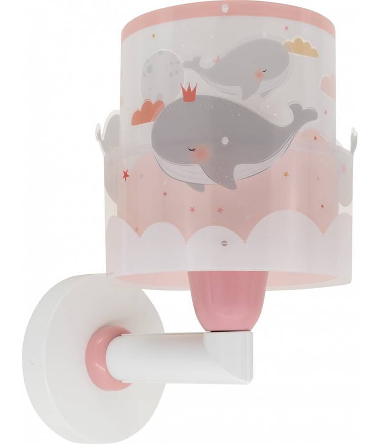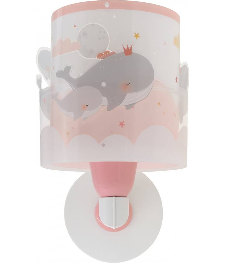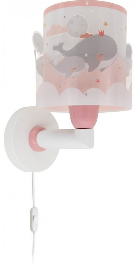Детский настенный светильник Whale Dreams с розовыми китами, выполнен из прозрачного двойного абажура, создающего двухмерный эффект. Установка с кабелем и выключателем или без них.