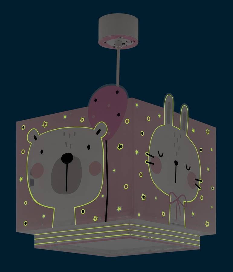 Потолочный светильник Baby Jungle для детской комнаты - одна из новинок Dalber. Он украшен забавными львами, тиграми, медведями и кроликами на двойном абажуре. Эта розовая версия идеально подходит для украшения комнат девочек. Светильник регулируется по высоте и оснащен рассеивателем, предотвращающим блики. Детский потолочный светильник Baby Jungle имеет двойной абажур из прозрачного полипропилена и световой эффект: контуры фигурок тускло светятся в темноте в течение нескольких минут, когда дети выключают свет. Вам понравится!