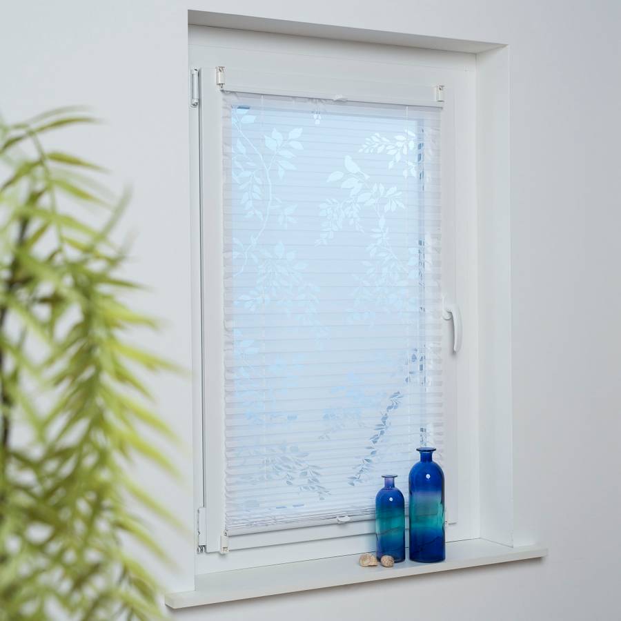 Эта белая плиссированная штора Klemmfix от Garesa с прозрачным мотивом в виде усиков листьев может быть установлена в различных положениях благодаря своей свободно перемещаемой конструкции. Эта плиссированная штора универсальна, будь то притягивающее взгляд украшение, экран для защиты от посторонних глаз или просто декоративный элемент. Однако она не предназначена для полного затемнения жилого помещения, а усики створок прозрачны. Установка: плиссированная штора крепится к оконной раме сверху и снизу с помощью входящих в комплект кронштейнов-зажимов. Это избавляет от необходимости сверлить или завинчивать. Кронштейны можно гибко регулировать, но толщина оконной рамы должна быть от 5 до 24 мм. Благодаря фиксация плиссированной шторы сверху и снизу, предотвращается ее качание при наклоне окна. Инструкция по измерению: Чтобы измерить ширину плиссированной шторы, выполните следующие действия: измерьте ширину стекла и прибавьте примерно 5 см. Обратите внимание на оконную ручку. Она не должна мешать работе плиссированной шторы. Для определения высоты измерьте высоту оконной рамы. Затем высоту плиссированной шторы можно легко отрегулировать в соответствии с окном дома.