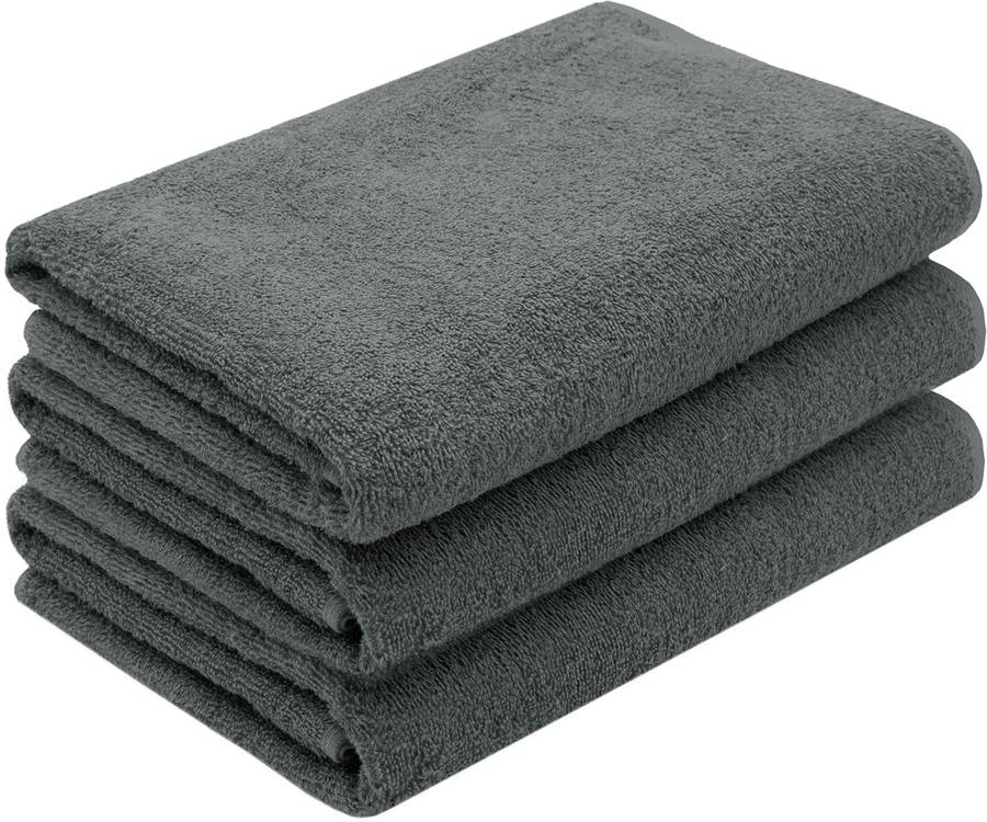 Большой комплект полотенец темно-серого цвета изготовлен из 100% хлопка, который был переработан в пушистую и хорошо впитывающую махровую ткань. Он также невероятно приятен на ощупь. Плотность прочного банного полотенца составляет около 520 г/м², а подкладка имеет двойной защитный шов. Также имеется вешалка для практичного хранения.
