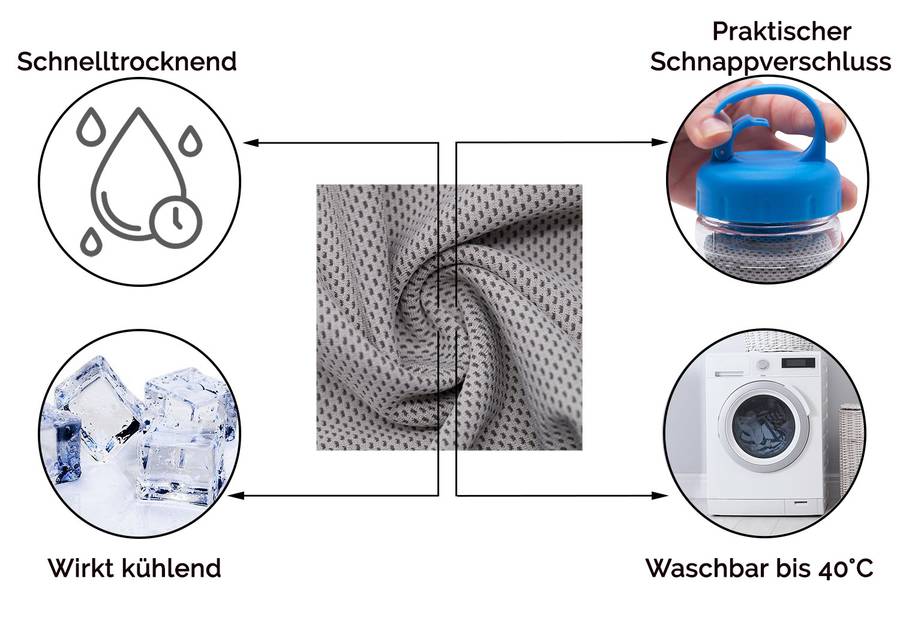 Идеально подходит для тренировок или летних прогулок. Просто намочите полотенце водой, слегка отожмите и помашите им в воздухе. Вы почувствуете мгновенную свежесть и прохладу на коже.