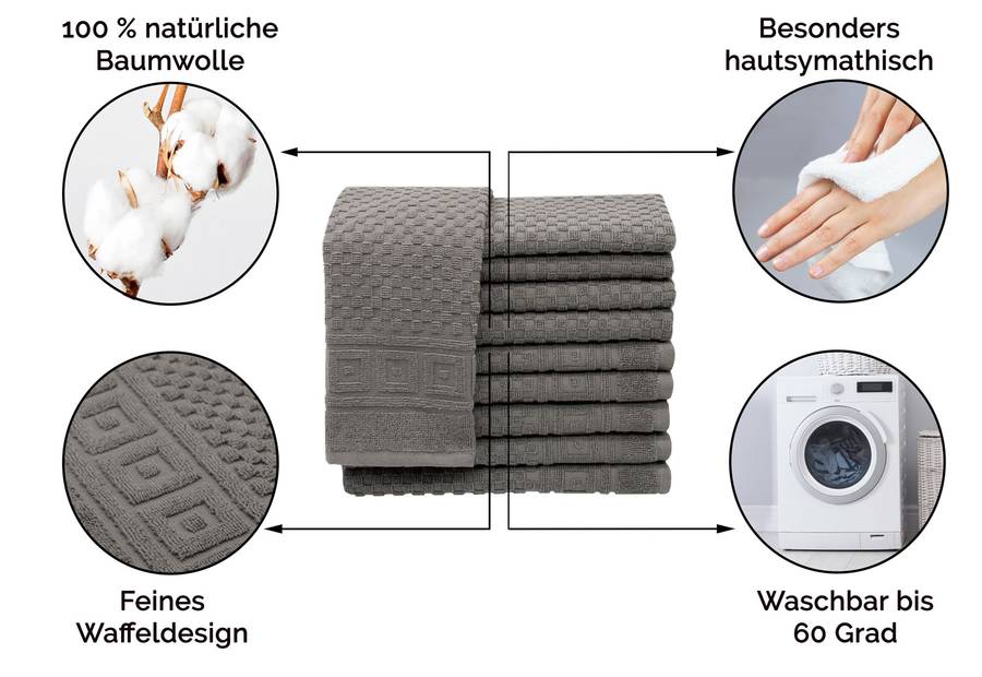 - Комплект поставки: Комплект из 10 гостевых полотенец с вафельным узором