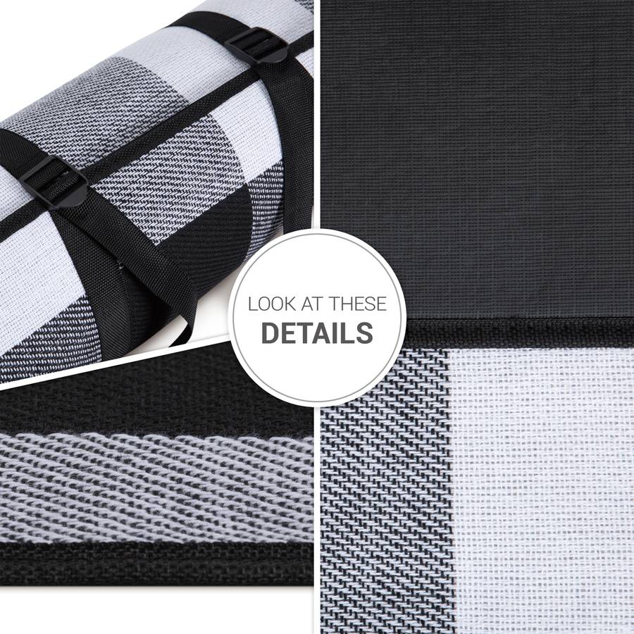 - ВНЕШНИЙ ВИД - Это модное одеяло для пикника впечатляет простым клетчатым рисунком и нежными черными и белыми тонами.