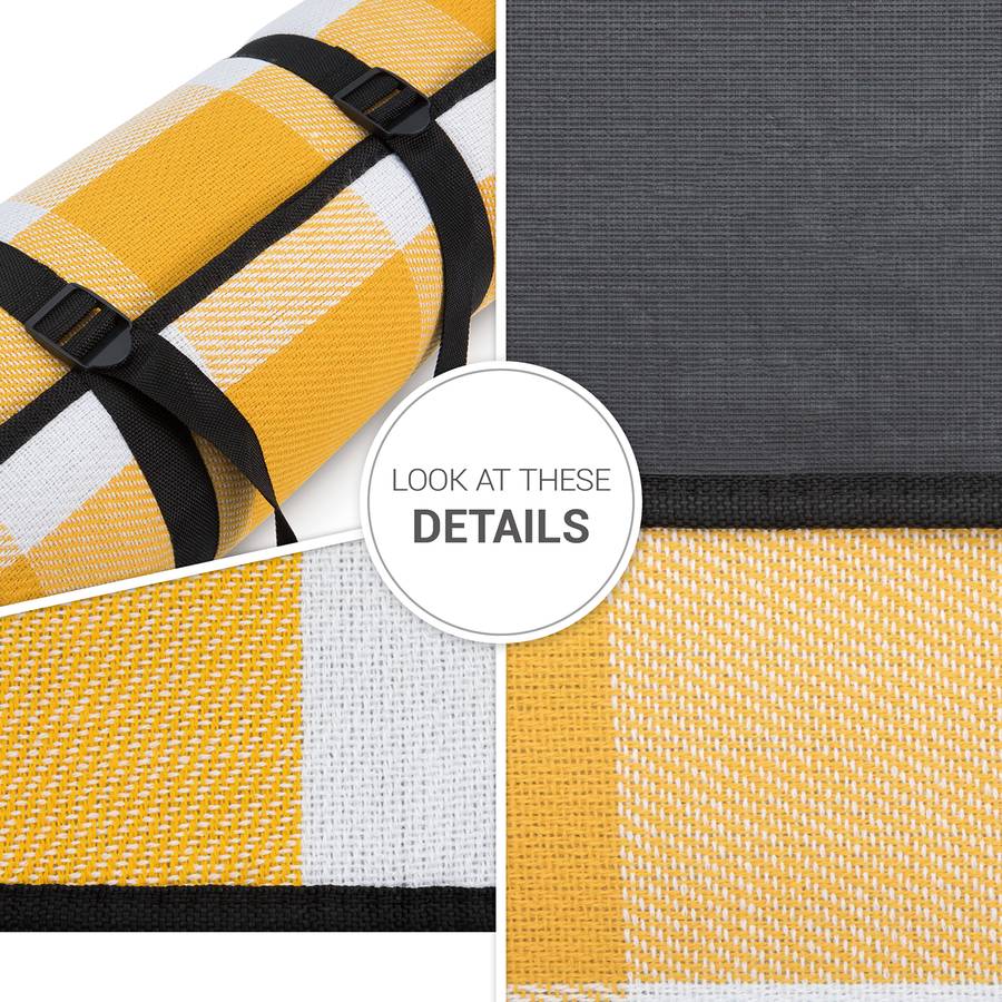 Эти высококачественные пледы для пикника ярко-желтого цвета по-настоящему привлекают внимание и станут стильным аксессуаром для любого отдыха дома и на природе. Классический клетчатый узор в белом цвете и различных оттенках желтого впечатляет своим великолепным внешним видом и дарит хорошее настроение. Пледы станут идеальным спутником как для активного отдыха, так и для спокойного пикника на свежем воздухе или для спокойного дня в парке, на пляже или у озера. Изготовленные из прочных и долговечных материалов, они долговечны и отлично подходят для любых природных поверхностей. Различные размеры позволяют разложить их и наслаждаться погодой. В сложенном виде и с ручкой для переноски они чрезвычайно просты и удобны в транспортировке. ТЕХНИЧЕСКИЕ ДАННЫЕ: Размер набора: 1 предмет, Материал: Полиэстер, Полиэтиленвинилацетат (ПЭВА), Вес в зависимости от модели: 0,78-1,56 кг, Размеры (ДxШ): 150x200 см, 200x200 см, 200x300 см, Водонепроницаемая нижняя сторона, Скручивается с помощью практичного ремня для переноски, Область использования: внутри и снаружи помещения. Сертификат STANDARD 100 от OEKO-TEX, Область использования: в помещении/на открытом воздухе