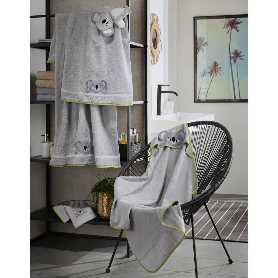 Махровое банное полотенце с капюшоном Коала от Erwin Müller. Изящный капюшон, вдохновленный изображением коалы, с очаровательной объемной вышивкой, аппликацией и ушками, притягивает взгляд. Что может быть приятнее, чем закутаться в это пушистое полотенце после душа, ванны или купания? Оно мягкое на ощупь, приятное на ощупь, хорошо впитывает влагу и дышащее. Контрастная окантовка по всему периметру. Боковая вешалка очень практична.
