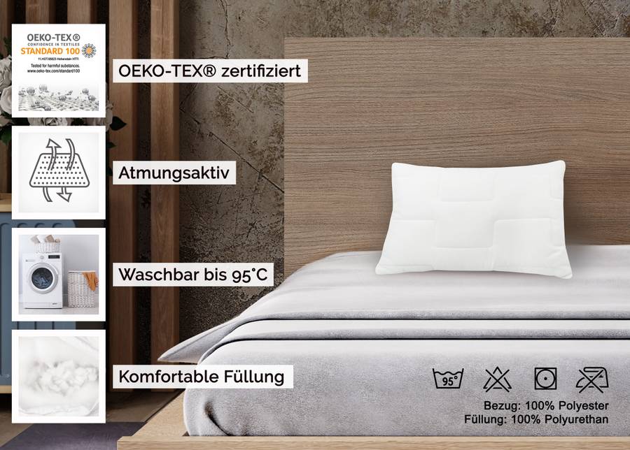 собственного дома с нашими универсальными подушками! Будь то спальня, гостевая комната или детская комната, наши подушки станут идеальным дополнением к любой комнате. Благодаря практичному размеру 40x60 см они не только обеспечат отличную поддержку, но и станут стильным акцентом в вашем интерьере. Изготовленные из 100% полиэстера, наши подушки гарантируют оптимальную долговечность и ощущение комфорта. Вы не только будете чувствовать себя комфортно, но и будете наслаждаться удобством в повседневной жизни: подушки можно стирать при температуре до 95°C, что гарантирует высочайший уровень гигиены - идеально для детской комнаты. Даже после многократных стирок подушки сохраняют свою форму и цвет, поэтому они всегда выглядят свежими и привлекательными. Для дополнительного комфорта подушки можно сушить в стиральной машине при низкой температуре. Они готовы к использованию в кратчайшие сроки и идеально выстираны, чтобы обеспечить вам и вашим гостям спокойный сон. Превратите свою спальню в оазис комфорта, обеспечьте первоклассный сервис в гостевой комнате и создайте уютный уголок в детской. Побалуйте себя и свою семью лучшим - наши удобные и простые в уходе подушки идеально вам подойдут. Выбирайте качество и функциональность, чтобы украсить свой дом. Ваша новая любимая подушка уже ждет вас. Вы!