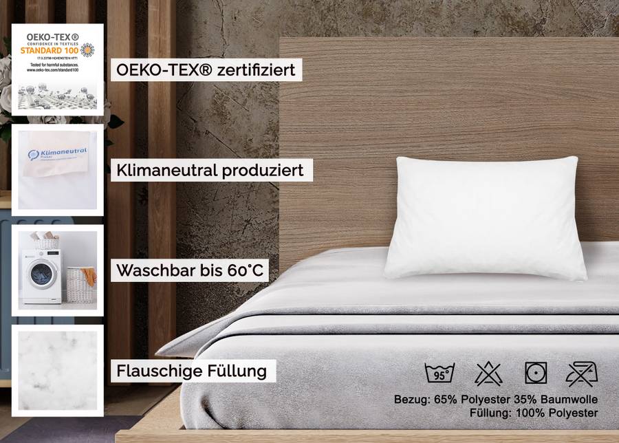 Наслаждайтесь спокойным сном с нашей высококачественной подушкой, которая идеально сочетает в себе комфорт и функциональность. Состав материала (65% полиэстера и 35% хлопка) обеспечивает приятную мягкость и долговечность. Благодаря легкости в уходе подушку можно стирать при температуре до 95°C - идеально для аллергиков и всех, кто ценит гигиену. Даже при частой стирке подушка сохраняет свою форму и приятные ощущения.