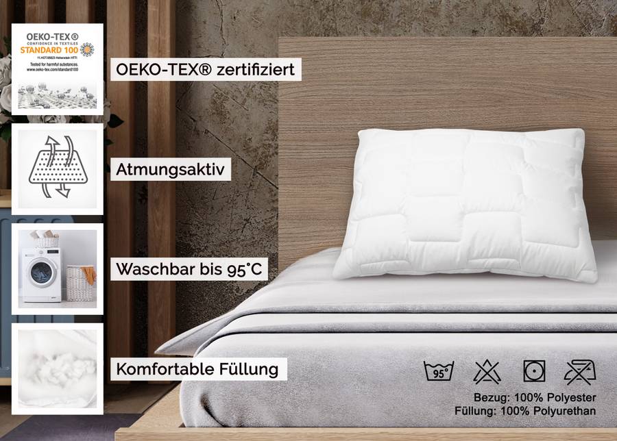 Откройте для себя максимальный комфорт вашего дома с нашими универсальными подушками! Будь то спальня, гостевая или детская комната - наши подушки станут идеальным дополнением к любой комнате. Благодаря практичному размеру 70x90 см они не только обеспечат отличную поддержку, но и станут стильным акцентом вашего интерьера. Наши подушки изготовлены из 100% полиэстера, что гарантирует оптимальную прочность и комфорт. Вы не только будете чувствовать себя комфортно, но и будете чувствовать себя комфортно в повседневной жизни: подушки можно стирать при температуре до 95°C, что гарантирует высочайший уровень гигиены - идеально для детской комнаты. Даже после многочисленных стирок подушки сохраняют форму и цвет, поэтому они всегда выглядят свежими и уютными. Для дополнительного комфорта подушки можно сушить в стиральной машине при низкой температуре. Это значит, что они готовы к использованию в кратчайшие сроки и идеально выстираны, чтобы обеспечить спокойный сон вам и вашим гостям. Превратите свою спальню в оазис комфорта, обеспечьте наилучший сервис в гостевой комнате и создайте уютный уголок в детской комнате. Подарите себе и своей семье самое лучшее - наши удобные и простые в уходе подушки - это то, что вам нужно. Сделайте ставку на качество и функциональность, чтобы сделать свой дом ярче. Ваша новая любимая подушка уже ждет вас!