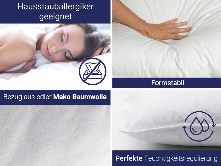 Откройте для себя непревзойденный комфорт с нашими высококачественными подушками, которые превратят не только вашу спальню, но и гостевую, детскую и гостиную в оазис релаксации. Подушка идеального размера 70x90 см обеспечит комфортную поддержку головы и шеи. Чехол из 100% хлопка обеспечит приятные ощущения для кожи и оптимальную воздухопроницаемость. Эти подушки универсальны, будь то гости, дети или вы сами. Наполнитель из 100% пера идеально адаптируется к форме вашего тела, обеспечивая спокойные ночи и расслабляющие часы на диване. За ними также легко ухаживать: наши подушки можно стирать при температуре до 60°C, поэтому вы всегда можете гарантировать свежесть и гигиеничность. Их также можно легко сушить при обычной температуре, что дает вам дополнительную свободу в повседневной жизни. Придайте своему дому новый штрих комфорта и уюта. Создайте атмосферу, которая располагает к отдыху и расслаблению. Посетите нас и убедитесь сами в качестве и комфорте наших подушек - идеального дополнения к любой комнате!