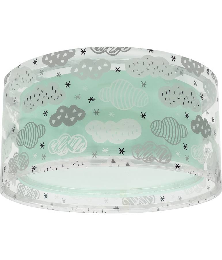 Потолочный светильник с 2 лампами и рисунком облаков из коллекции Clouds, с прозрачным двойным абажуром зеленого цвета.
