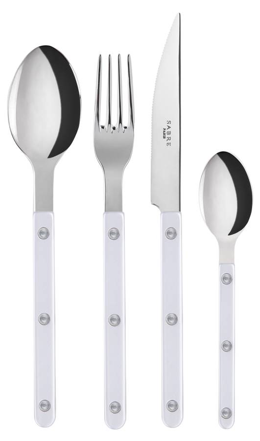 Этот набор столовых приборов Sabre из 4 предметов включает суповую ложку, нож и вилку, а также маленькую десертную ложку. Этот набор столовых приборов, доступный в нескольких цветах, должен быть в каждом доме. Он также доступен в виде набора столовых приборов из 24 предметов на 6 персон.